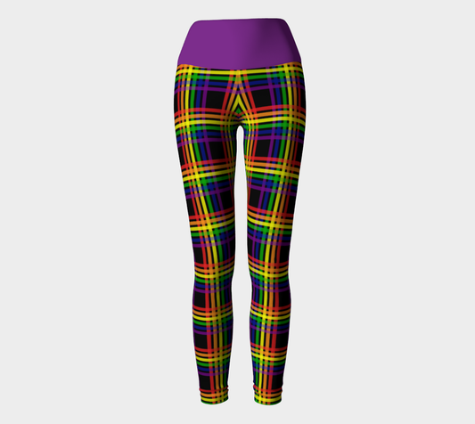 Rainbow and Black Plaid Yoga Leggings